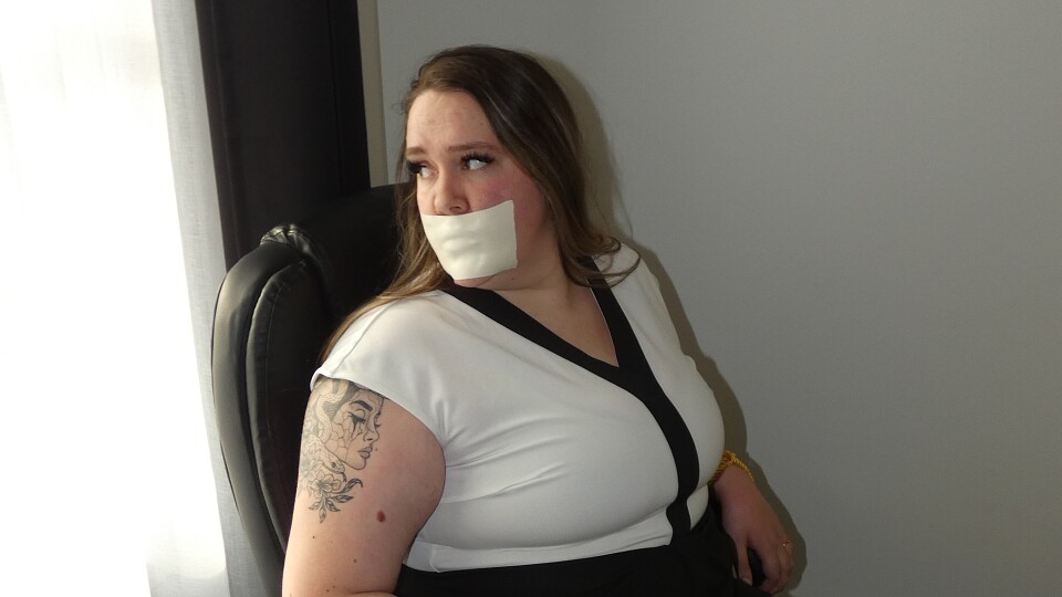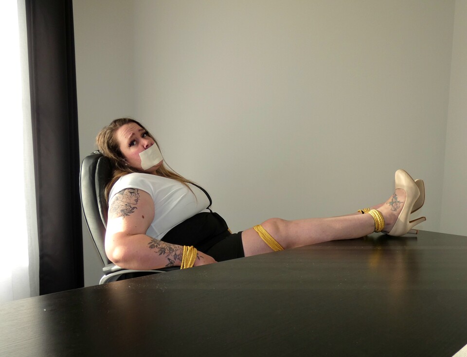 Celia is a coorperate It girl. one of the companies employees brings in his laptop because its not working anymore. To her shock she finds it filled with viruses because the employee has downloaded so much bondage porn. She calls him into the office to say she has to let the supervisor know that there is porn on the company laptop. Before she gets a chance to do that the employee begins to tie Celia up to the chair. The office is closing for the night so Celia is by herself bound and gagged and cant get away while this creep watches her struggling. He even takes her heels off and touches her feet. She has to figure out away she will get free and get this guy fired.
