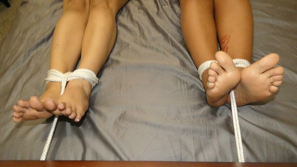 Karma has been a awful roomamte to Charry and I. She never clans up after herself and always steals Charrys clothes and late with the rent. Charry and I had an idea to teach Karma a little lesson. She is chillin on the bed when we both come in and grab her. Charry Holds her down while i tie Karmas hands and feet. Karma is not happy but I let Charry have a little fun with her. Charry tickles Karma all over and smacks her ass. I realize i cant let Charry have all the fun. I turn the tables and begin to tie Charry up. They are now both bound and I shut them up with tape gags. I tickle them and make them smell each others feet and socks. I eventually leave them tied to the bed and pull up their tops. I go out to hand with the guys and leave them like this all night. Hopefully they will both learn their lesson and take me seriously in this house.