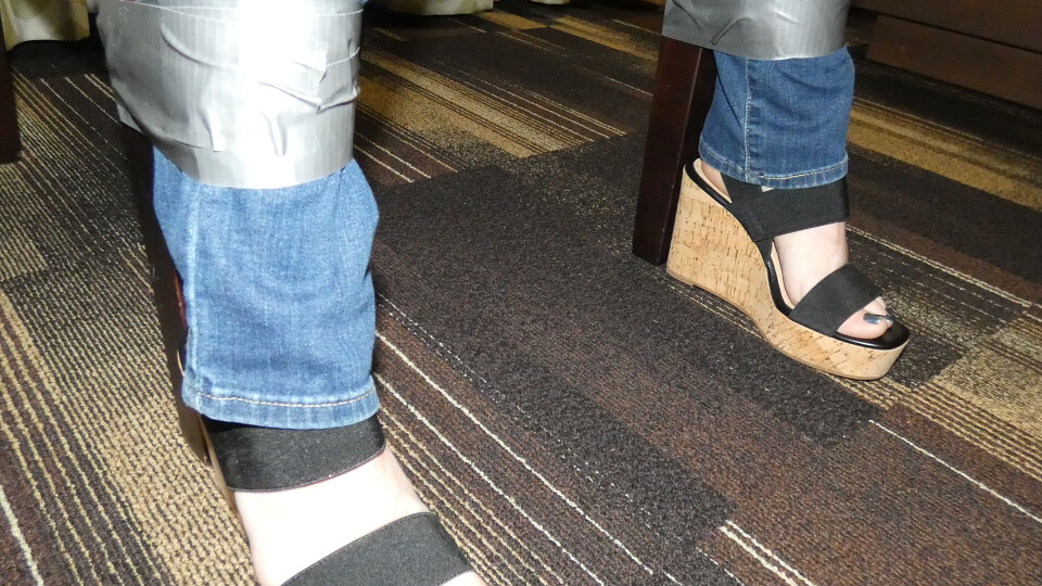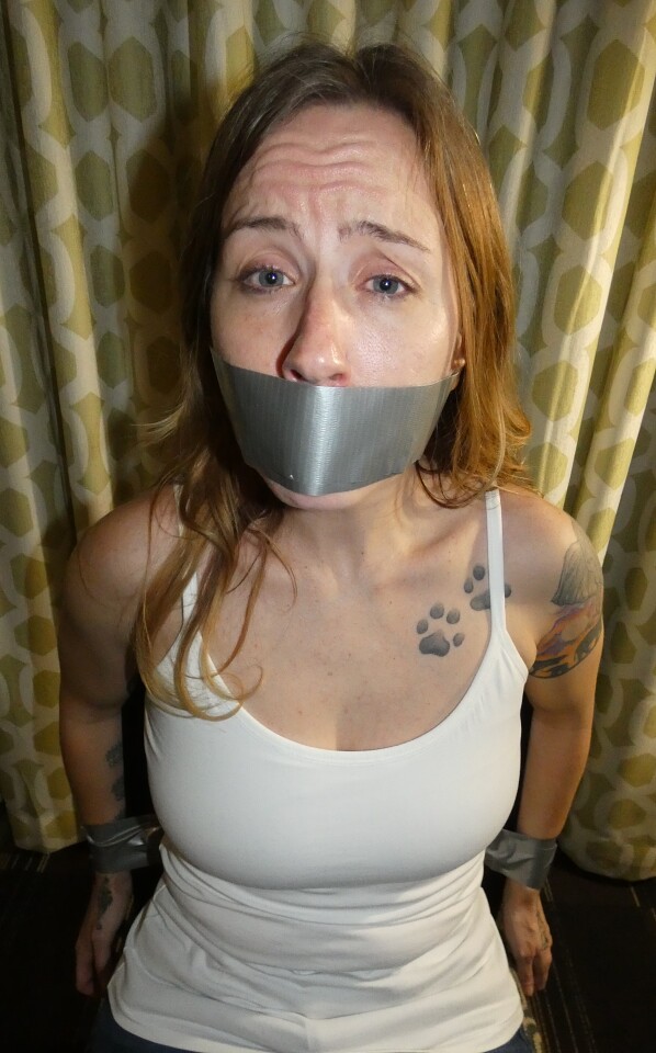 Misty is a cutie in jeans and tank top that is being held for ransom. She is desperately waiting for her parents to pay. She is hoping its soon because her captor is getting a little handsy and is pulling down her top to play with her breasts.